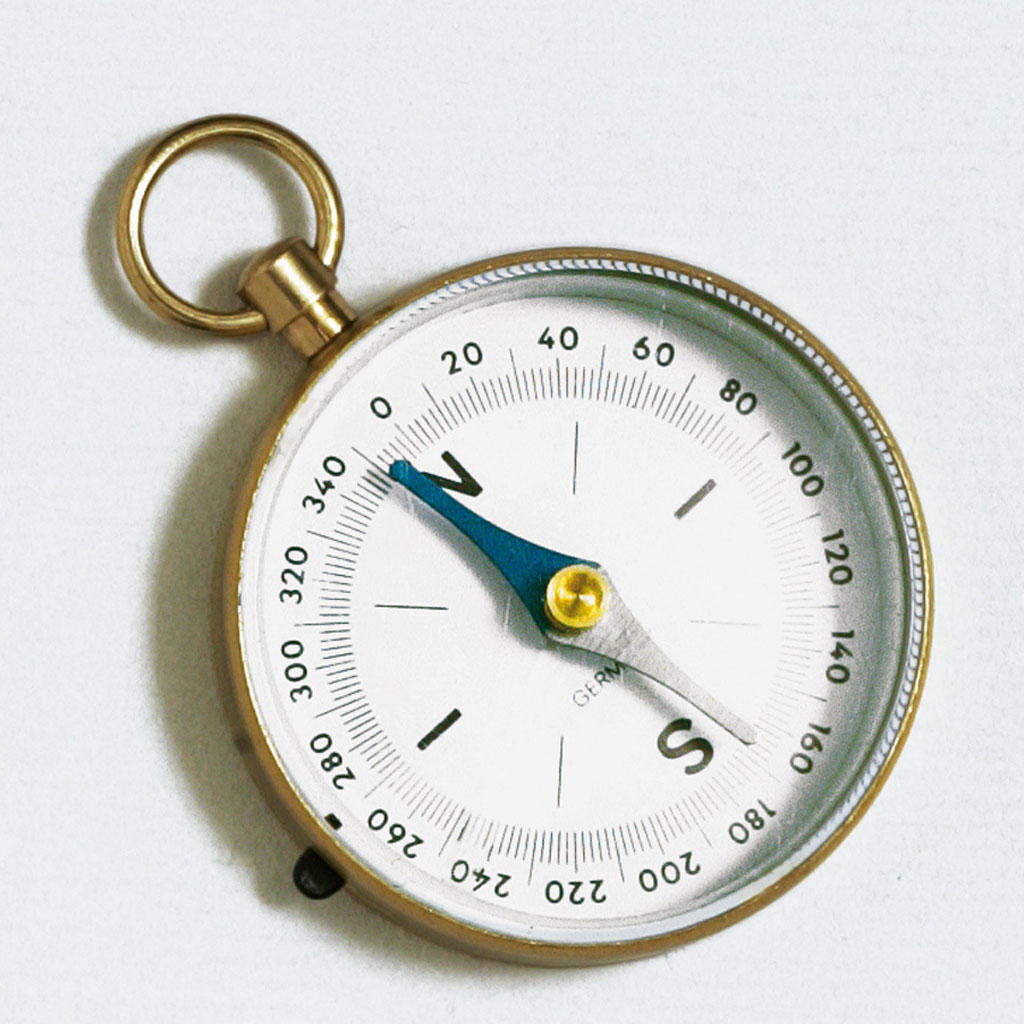 In Messinggehäuse, Magnetnadel mit Achatlager und Arretierung.