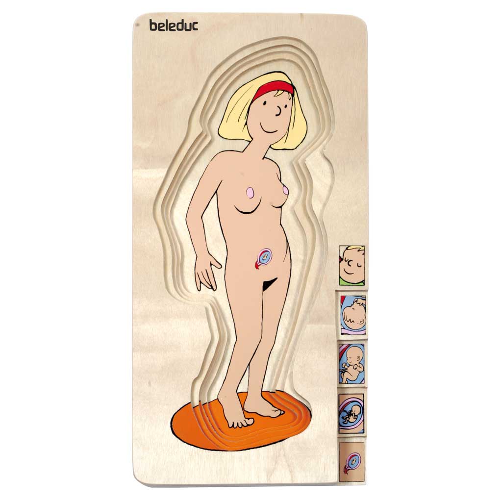 Vom Embryo zum Baby ... Dieses Lagenpuzzle aus Holz zeigt in kindgerechter Weise die Entstehung des Kindes und den Verlauf einer Schwangerschaft sowie die körperlichen Veränderungen einer Frau während der Schwangerschaft.