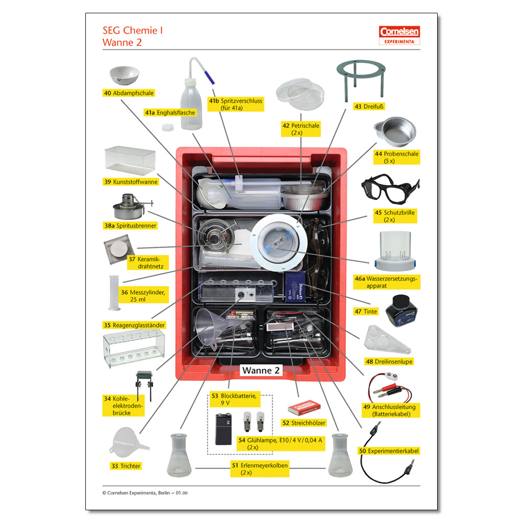 Der Gerätesatz ist für den Anfangsunterricht konzipiert. Er enthält Geräte und Materialien, die zu grundlegenden Untersuchungen von Stoffen erforderlich sind. (Material für 1 Schülergruppe)