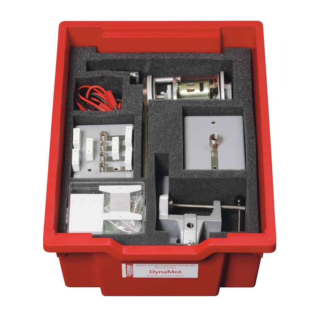 Zur Durchführung von Schülerversuchen mit dem handgetriebenen Generator DynaMot von Dr. Heinz Muckenfuß. Der Schülerexperimentiergerätesatz -Elektrik 2: DynaMot- wird mit einer ausführlichen Versuchsanleitung geliefert. Die Versuchsanleitung enthält Kopiervorlagen mit der Beschreibung der Versuchsdurchführung und Fragen zu den Versuchen. In der Lehrerhandreichung sind die Antworten zu den Fragen aufgeführt. Die mehr als 25 Einzelteile sind in einer stabilen Kunststoffwanne (312 x 427 x 150 mm) mit Schaumstoff-Formeinsatz und transparentem Deckel untergebracht.