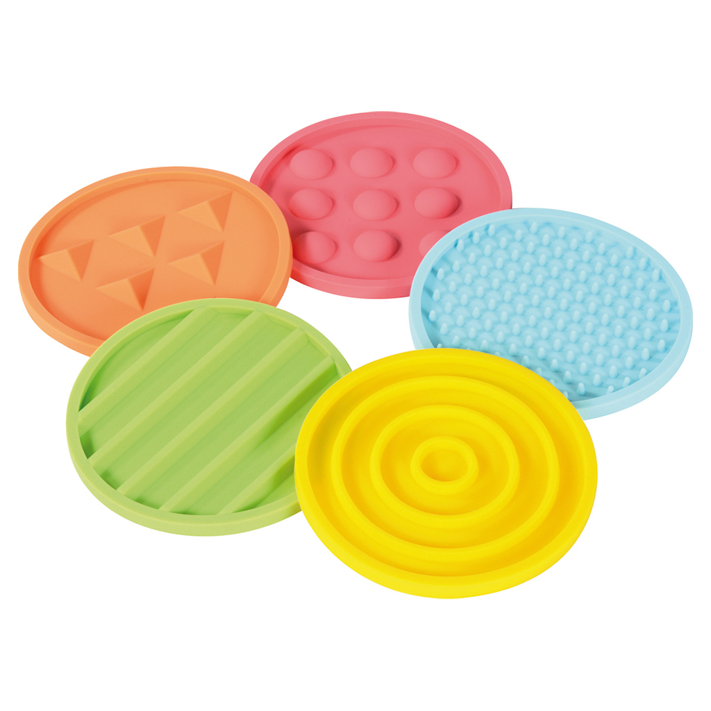 Die Silikonmatten sind nicht nur rutschfest und angenehm weich, sondern auch äußerst robust und pflegeleicht. Sie lassen sich einfach mit Wasser abwaschen oder sogar in der Spülmaschine reinigen. Dieses Set umfasst fünf große und fünf kleine Matten sowie ein praktisches Säckchen zur Aufbewahrung und ist für Kinder ab drei Jahren geeignet.