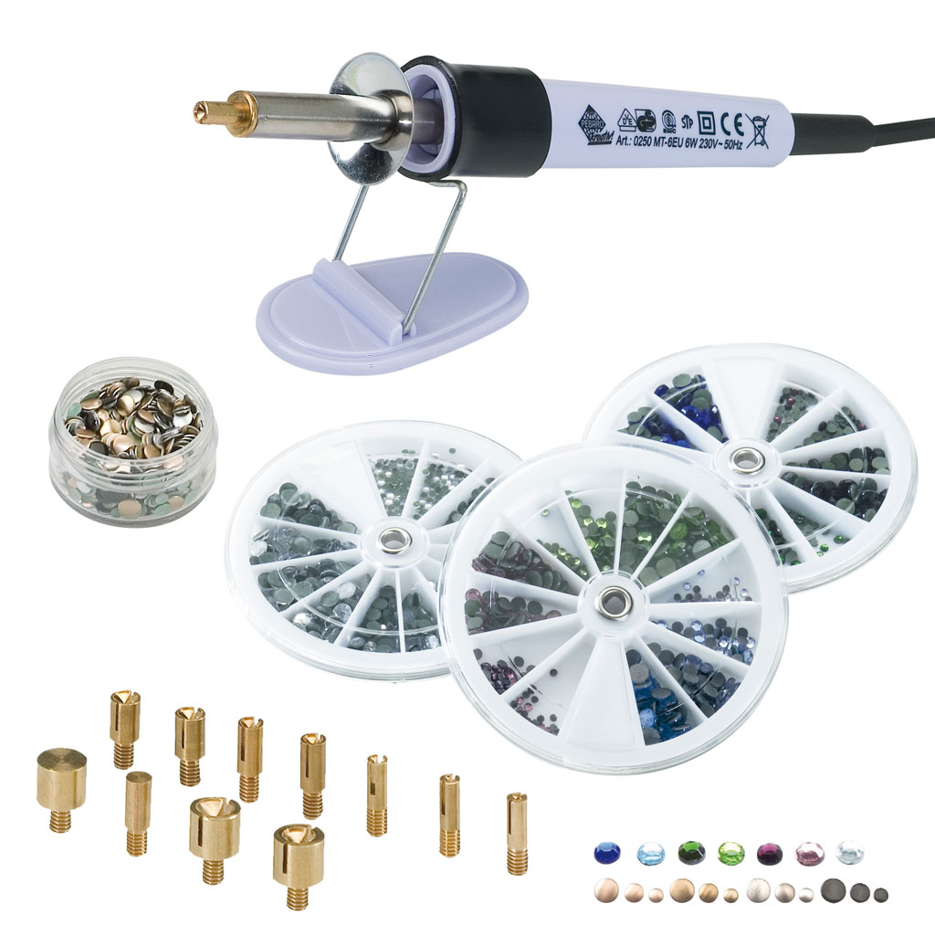 Strass-Set, Kolben mit Pickern, Steinen und Anleitung